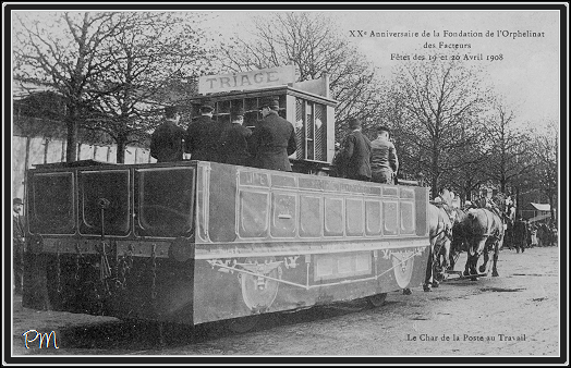 (défilé boulevard des Ecoles) - Le char de la poste au travail